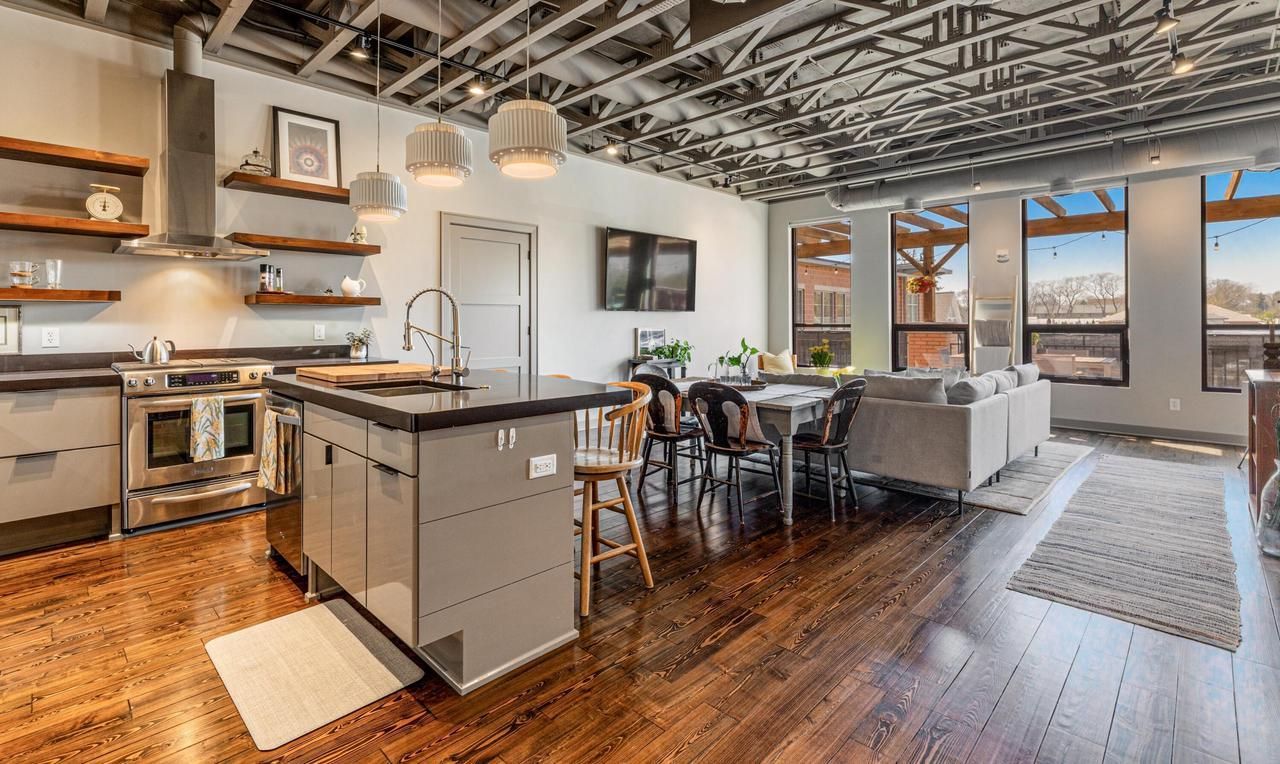 Newly remodeled contemporary condo in the heart of Grafton--offering a rare blend of city-style living in Ozaukee County. This 2-bedroom, 2-full bath residence features a newly added primary suite with a spa-like bathroom and walk-in closet. Dramatic loft-style ceilings and expansive windows fill the home with natural light, creating a bright, airy feel. The open-concept kitchen and living area flows seamlessly to an impressive 500 sqft outdoor space - perfect for entertaining. Stunning river view and flex areas provide options for a home office or guest space. Located above Colectivo Coffee and includes two heated underground parking spaces. Great potential as a second home with short-term rental opportunities. Some photos virtually staged or AI-enhanced.