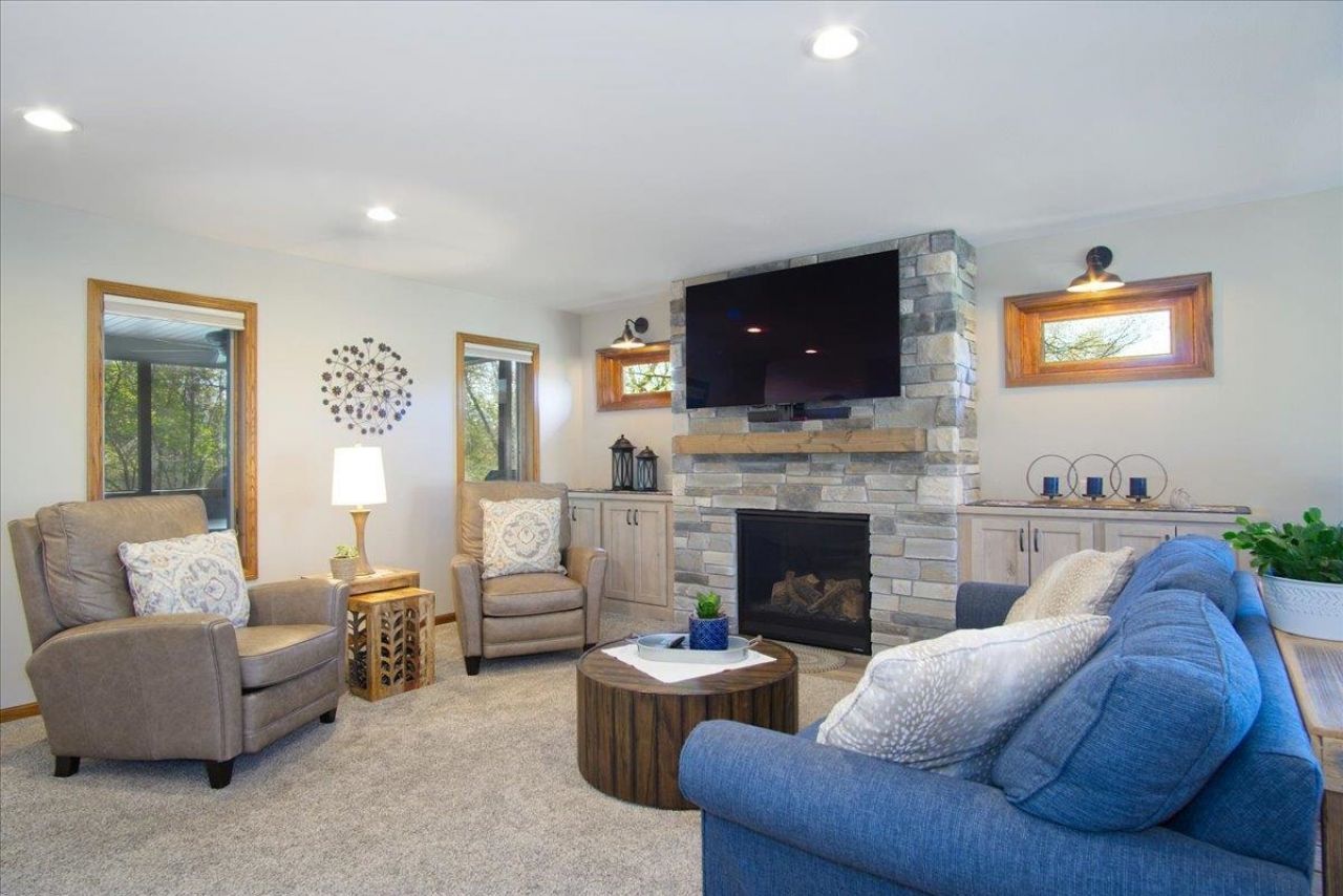 Welcome to this inviting ranch in Hawks Landing w/a 1/2-acre setting that offers the perfect blend of open space & peaceful woods. Enjoy morning coffee or evening gatherings on the newer two-tier deck off the lovely screened porch, overlooking mature trees & perennial landscaping supported by an irrigation system. Newer LVP & carpet on the main level tie together the connected living spaces creating warm everyday flow, while the spacious kitchen w/huge pantry is ready to shine as the heart of the home. The walk-out lower level features 3 large bedrooms (incl one w/ensuite), a second home office, and fun hang-out space w/pool table and bar area. Heated 3-car garage w/basement access for all of your toys. Just steps from neighborhood pool, clubhouse, tennis courts, and golf this home provides an exceptional lifestyle opportunity!