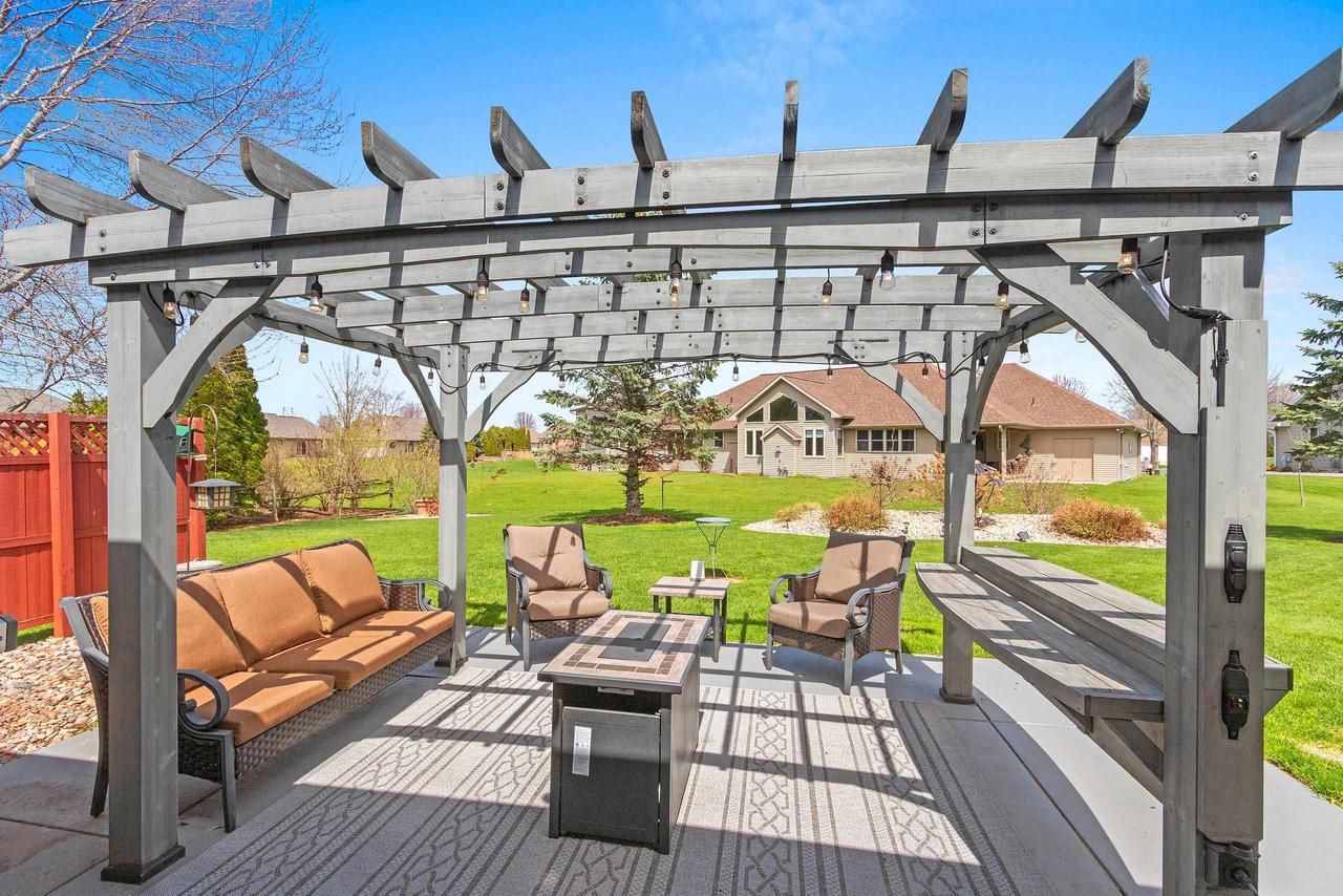 Vaulted ceilings and a gas fireplace set the tone in the main living area, where light moves easily across an open, comfortable layout. The kitchen centers around a large island with seating, warm wood cabinetry, and backyard views, with dining nearby and an easy transition outside. A split-bedroom design places the primary suite with tray ceiling, walk-in closet, and full bath. First-floor laundry adds everyday ease. The finished lower level adds depth with a wet bar, expansive rec room, exercise area, office, and full bath, offering space that adapts to gatherings or extended living. Pergola-covered patio and open yard create a natural place to settle in. Close to McAuliffe Elementary with quick highway access. Offers due 5/3 PM, reviewed 5/4