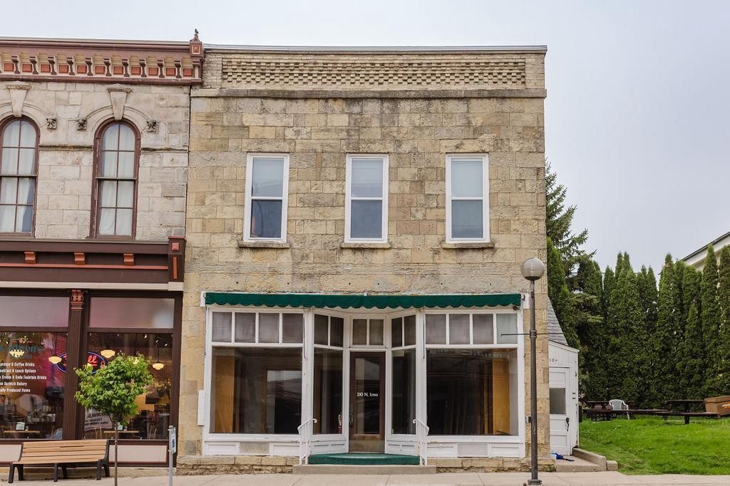 Known as the H&J Rowe building, built in 1868, the stone building has a limestone ashlar facade, with large blocks cut and laid in regular rows. A row of corbeled brickwork up at the roofline is believed to have been added at a later date. When built, it was a general store. It has been retail and office space in recent years. Two efficiency apartments upstairs make this property a great investment. Located directly south of the Iowa County Courthouse, the H & J Rowe Building is an excellent example of stone construction and of commercial vernacular architecture. Recent repairs and updates include. Roof, tuck pointing, and waterproofing the basement. See all in associated docs.