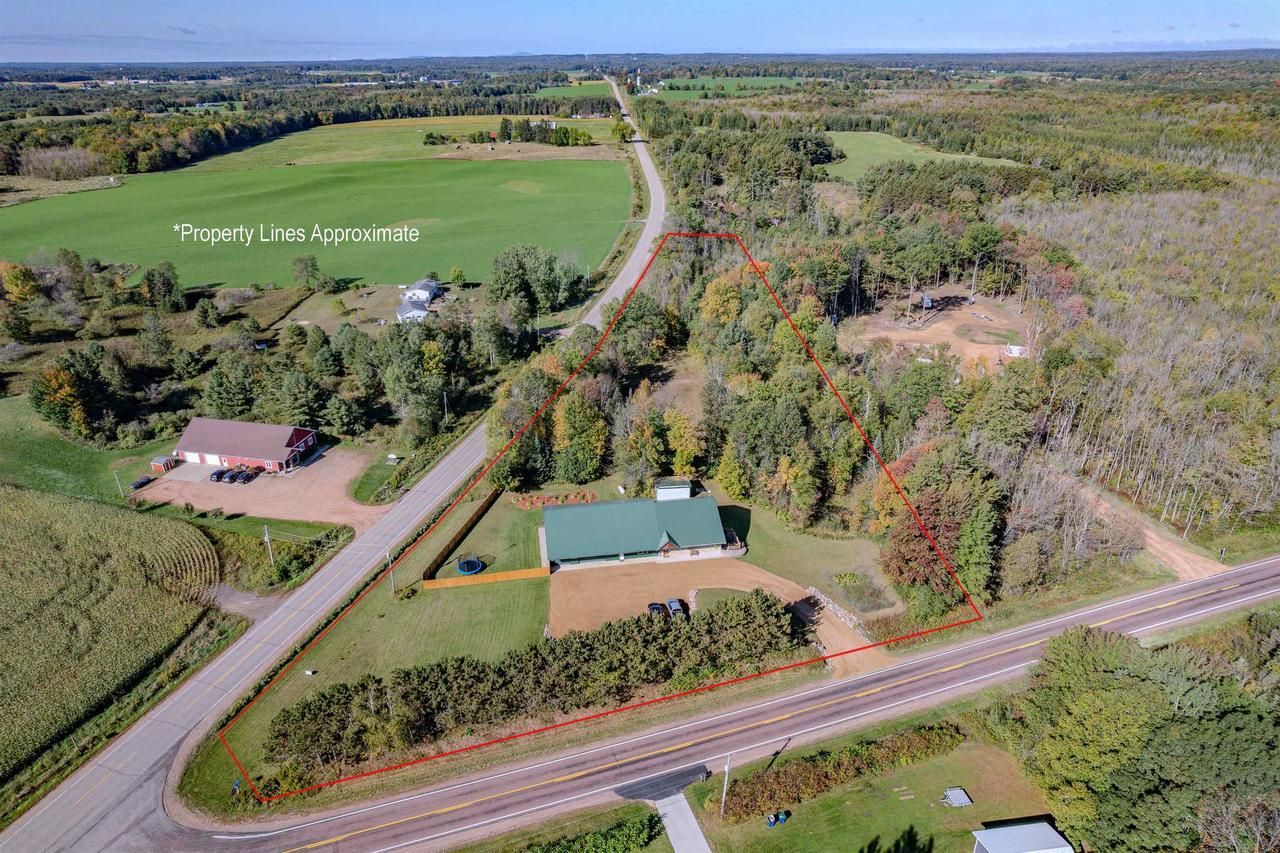 Beautiful newer property 25 mins east of Wausau. 3941 sq ft on 3.2 acres. Attached 4+ car 2000 sq ft garage. In-floor heat throughout including garage w/ separate zones + central air. Vaulted cedar ceilings, very spacious open kitchen/dining room area w/ hickory cabinets, large loft above kitchen w/ big closet. Very spacious living room w/ huge windows. Main level laundry w/ elevated platforms for washer/dryer. Master bedroom w/ walk through closet. Master bath w/ jetted tub, double sinks & huge tiled walk-in shower. Upstairs bedrooms share a full bath, one w/ large walk-in closet. Finished basement with half bath, bar area w/ sink, an unofficial bedroom/bonus room w/ closet, & extra tile storage room. Steel siding & roof. Large overhangs for extra covered storage. 16x23' shed & much more!