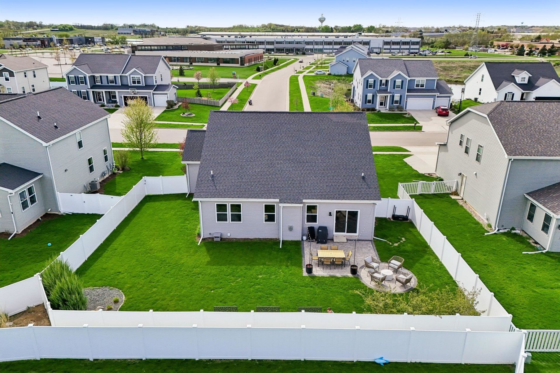 Showings start May 1st. Beautifully designed home featuring desirable open floor plan that seamlessly blends comfort and function. Spacious kitchen is a true centerpiece, featuring walk-in pantry w/ custom shelving for optimal organization, island w/ breakfast bar, open layout that flows into great rm - perfect for everyday living & entertaining. Main flr primary bedrm suite thoughtfully separated from 2nd bedrm & office featuring custom built-ins. Upstairs, you'll find 2 additional bedrms along w/ versatile loft space, ideal for play area, reading or workspace. Large unfinished basement w/ egress window, offering endless possibilities for future living space, home gym, or additional storage. Step outside to brick patio & fenced yard - relax & enjoy summer days! Gas line to grill! Three car garage provides ample room for vehicles, storage & hobbies. With its flexible layout & smart use of space, this home is perfect for modern living, offering both togetherness and room to retreat.