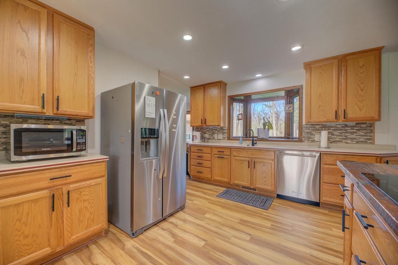 Showings start 4/29! Come fall in love with this rustic property on a 1.5 acre wooded lot with 4,800 sq ft of versatile living space tucked into a quiet cul-de-sac. With plenty of room for entertaining, this spacious 4 bedroom home features three functional levels with an excess of natural light, original solid wood built-in shelving and hidden wine cellar. A standout feature is the detached 36' x 32' shop complete with radiant floor heating, 10' door and additional recreational rooms w/private entrances. This home has a rare blend of everything you need with the bonus of serene privacy in a quiet neighborhood.