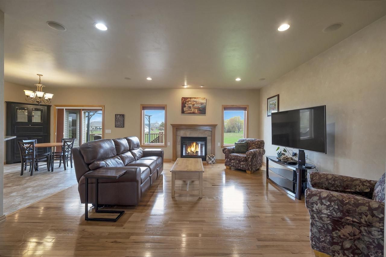 Beautiful ranch home set in a gorgeous country setting with a large backyard that backs up to conservancy land offering peaceful views. This quality former showcase home offers lower level exposure and bathroom rough-ins, making future finishing easy. The main level features an open concept living room with a cozy fireplace and a dining area with stunning backyard views. The kitchen offers plenty of cabinet space, a large pantry, and a great layout for everyday living. The spacious primary suite features a beautiful full bathroom with tile flr w/radiant heat, a walk-in shower and a large walk-in closet, perfect for organizing your wardrobe. Enjoy relaxing or entertaining on the deck overlooking the backyard and conservancy. Roof replaced in 2022.