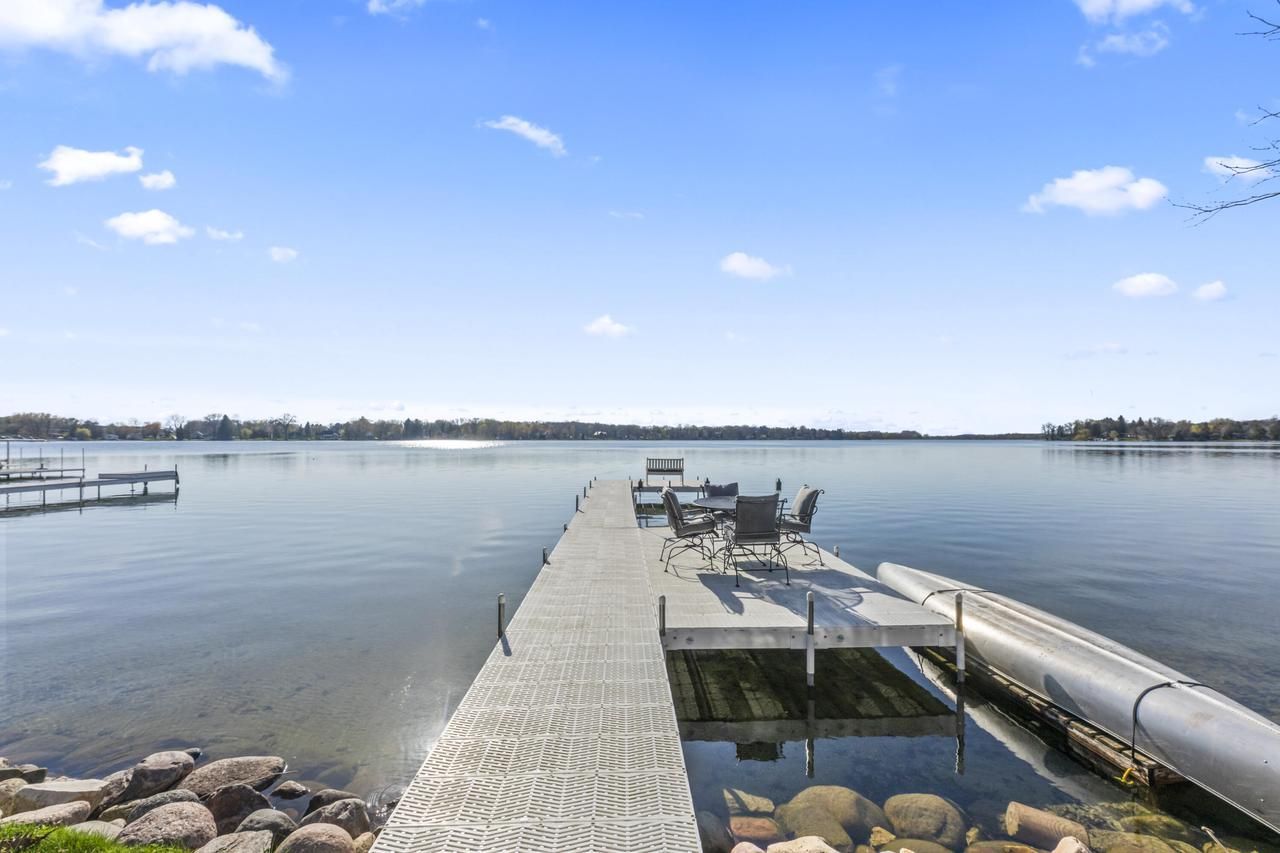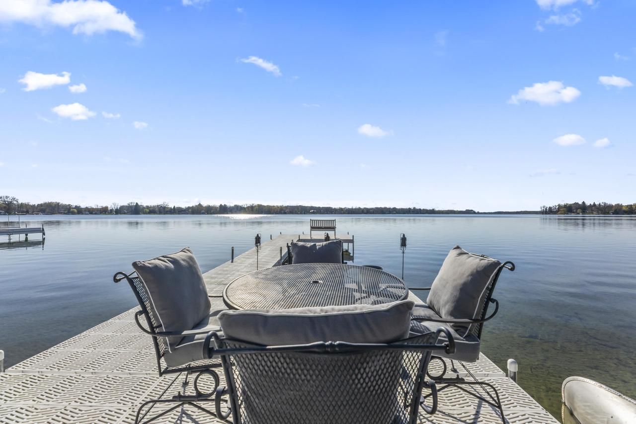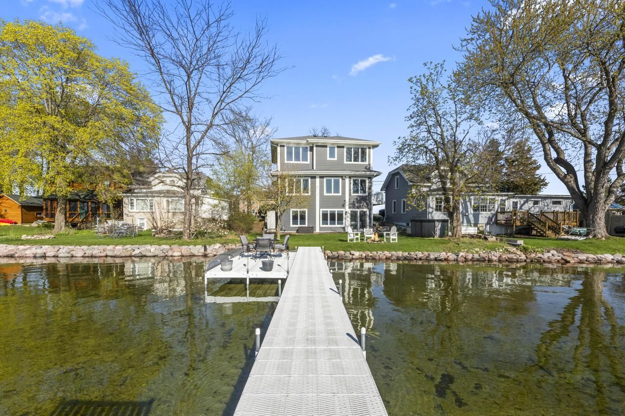 The pier is in and ready for your boat. This 2016 custom home built by Zach Builders offers 50 feet of sparkling frontage on Golden Lake, with a sandy bottom and ideal conditions for water skiing, boating, fishing, or simply relaxing on a warm summer day.Upstairs features three bedrooms plus a comfortable sitting area with beautiful lake views. The main level has a gourmet kitchen with stainless appliances, an inviting hearth area, & a bright dinette. The walk-out lower level includes a rec room with heated tile floors, stunning lake views, a den/office or 4th bedroom, laundry, and a full bath--all opening directly to the water. Additional highlights include Anderson Windows, hardwood floors, a flat lakeside lot, fire pit, new rock wall, and a pier with two seating areas.