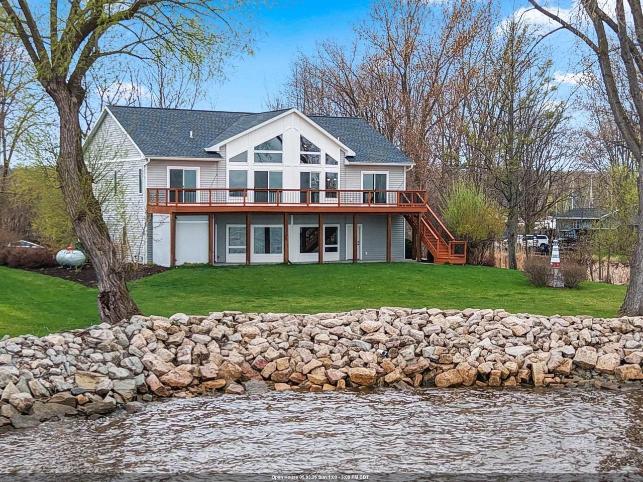 A truly exceptional waterfront retreat offering 160 plus ft of prime frontage on the Bay of Green Bay with ACTUAL 180 plus views. This 3,047 sq ft secluded nautical paradise was custom designed to showcase this truly rare and incredible setting. This home offers 3 bedrooms, 3 bathrooms, a dramatic 27x21 great room with soaring ceilings, a wall of glass, and a luxurious 14x56 deck, an ABSOLUTE GOURMET kitchen with pantry and a luxurious primary suite with W.I.C., spa-like glass/tile shower, and whirlpool tub. Built in 2016 with in-floor radiant heat throughout?including the 3 finished garage stalls?plus forced air heat and A/C. Mature trees, a substantial dock, and RV hookup complete this private, turnkey home just minutes from town. Fresh paint. Showings begin May 2. Open house May 3.