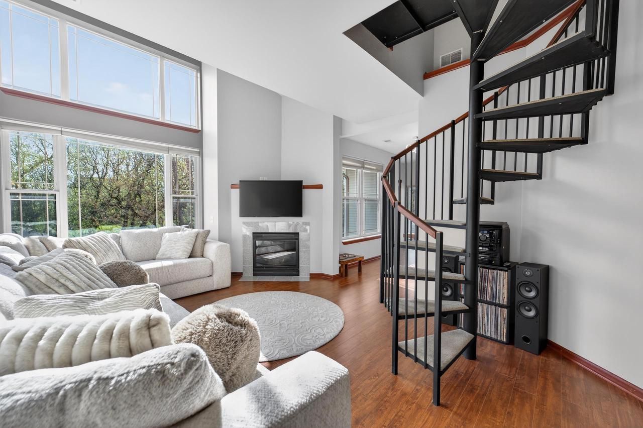 Tucked away on a quiet, tree-lined dead-end street, this upper-level end-unit condo offers privacy, style, and space?right next to Windsor Fireman's Park. With a private entrance and 2-car attached garage, it lives like a single-family home. Inside, enjoy an updated kitchen, hardwood floors, and a vaulted living room with two-story, floor-to-ceiling east-facing windows that flood the space with light. An iron spiral staircase leads to an open-air loft?ideal for an office or lounge?plus a large bonus room with skylights. The spacious primary suite features a private full bath and walk-in closet, with additional bedroom/bath for guests. Outside, the 26?x34? rooftop patio is perfect for relaxing or entertaining. Includes nearly 500 sq ft of secured private basement storage and extensive updates (see docs). Move-in ready and water included!