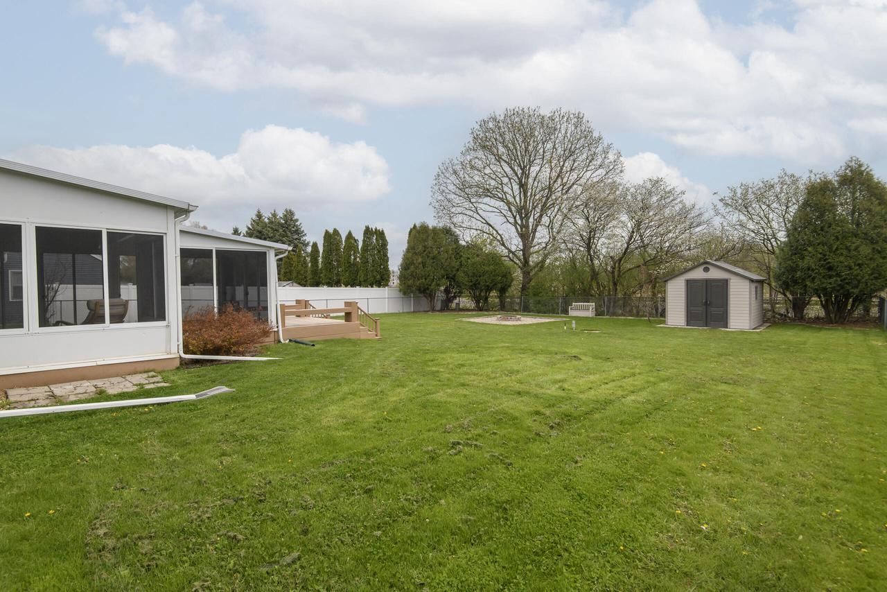 Step into this beautifully updated home featuring a remodeled kitchen outfitted with elegant Durasein solid surface countertops, offering both style and durability. New light fixtures throughout add a fresh, modern touch. The inviting family room is anchored by a cozy gas fireplace, perfect for relaxing evenings. Crown molding adds a sophisticated finish to the living spaces. The finished lower level offers a versatile rec room, ideal for entertaining. Enjoy the screened in porch and outdoor living in the fenced backyard, complete with a low-maintenance composite deck featuring built-in benches perfect for gatherings or quiet evenings. A storage shed provides convenient extra space for tools and outdoor equipment. This home combines thoughtful updates with comfortable living--