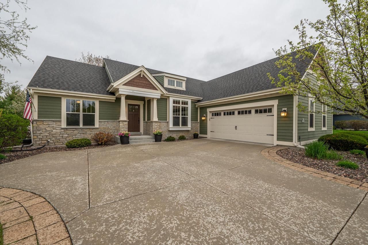 Stunning move-in-ready ranch in desirable Edgewood Farms, just a short walk to Pewaukee Lake, dining, and entertainment. Enjoy easy living with a split-bedroom, open-concept design, hardwood floors, and a warm living room with gas fireplace. The kitchen is built for gathering, featuring granite countertops, double oven, breakfast bar, and abundant counter space. Unwind in the private primary suite with walk-in closet and spa-like bath with double sinks and tiled shower. The finished lower level is perfect for hosting with a rec room, built-ins, wet/dry bar, wine cellar, 4th bedroom, and full bath. Relax outdoors on the paver patio with pergola, surrounded by professional landscaping and irrigation.