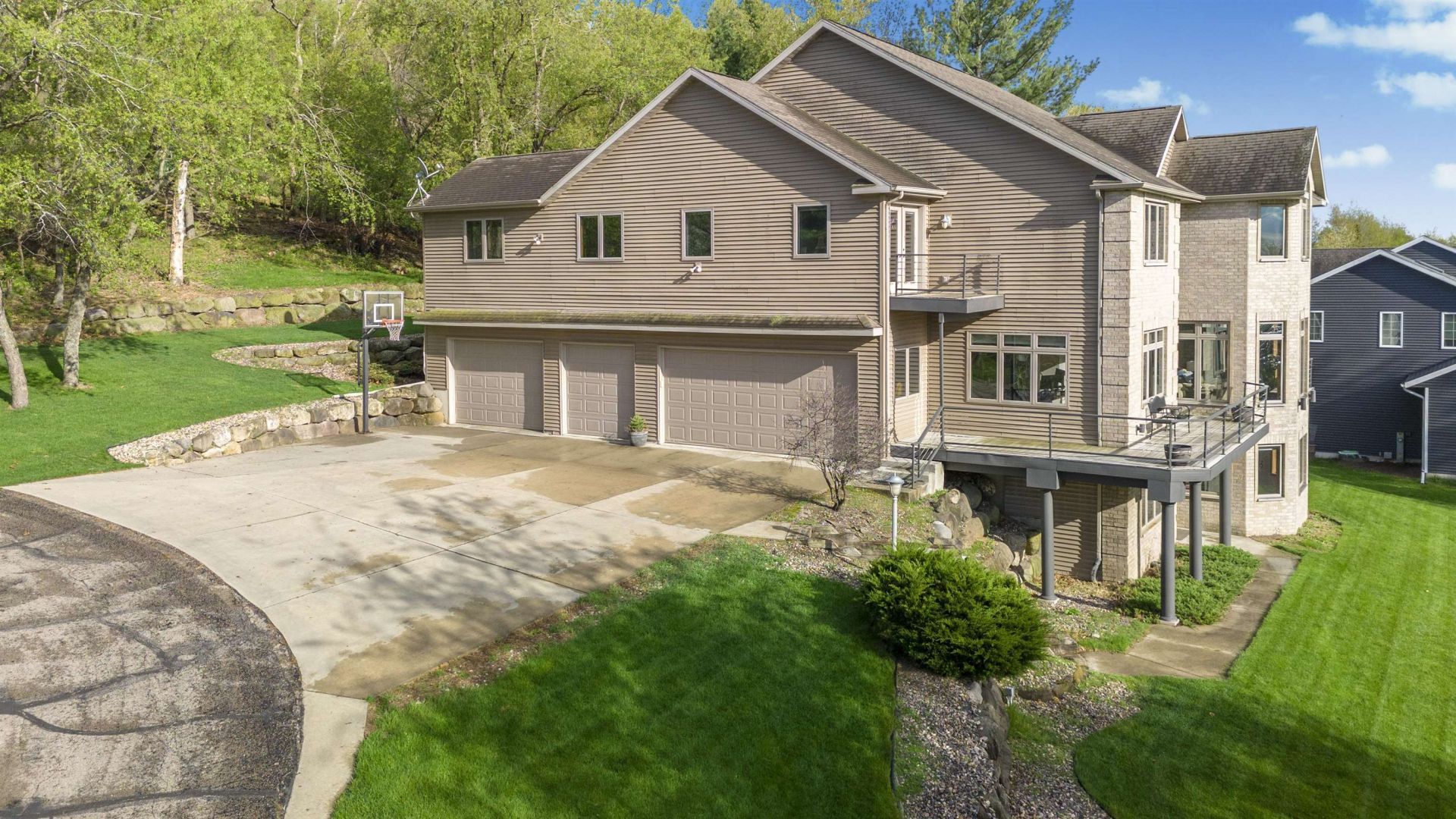 Experience the best of Lake Wisconsin living on coveted Paradise Island. This exceptional home offers privacy, space, and breathtaking views from multiple lake-facing balconies. The inviting living room with fireplace opens to a balcony, perfect for relaxing. The expansive kitchen opens to a dining area and flows through French doors to more dining space and patio with a built-in grill that's ideal for indoor-outdoor gatherings. Upstairs, are 3 bedrooms and an impressive primary suite with a private balcony, fireplace, 2 walk-in closets, and a convenient laundry room that could also serve as a private office. The ensuite bath is stunning, showcasing Carrera marble, a walk-in shower, and soaking tub. The walkout lower level expands the living space even further with a rec room featuring a wet bar, and space for a home office or gym. Plus, another bedroom and full bath that's perfect for guests. This is the kind of home that makes every day feel like a getaway! Check out the 3D tour!