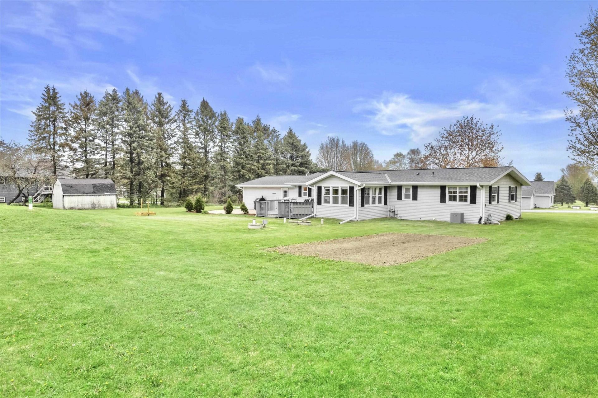 Nestled on a serene one acre haven in a quiet country neighborhood, this beautifully updated ranch whispers of timeless craftsmanship, charm and pride in ownership. Bathed in natural light, home unfolds in a graceful open floorplan adorned with bright, joyful Joanna Gaines-inspired finishes that feel both energizing, organized and deeply zen. Thoughtfully designed kitchen flows effortlessly into living spaces. West-facing sunroom captures the essence of an up-north rustic cabin vibe that soothes at every sunset. Step onto the expansive deck and to a sweeping backyard embraced by towering mature evergreens standing sentinel along the property lines. Below awaits a sprawling unfinished basement, rich with storage and future dreams. Minutes from downtown Oconomowoc - peaceful country living meets coveted convenience. Welcome to your forever story. Modestly priced for expeditious sale.